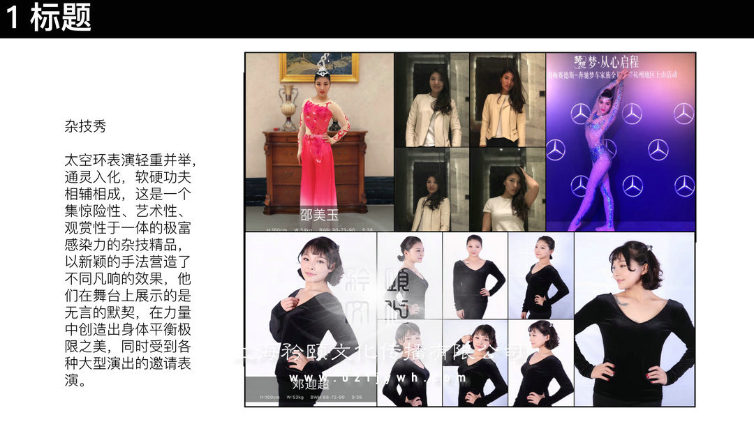 1.演藝演出,專業的國內外舞蹈演出、音樂演出、樂器表演、主持人、禮儀、模特等綜合演出和人員服務以及演出周邊服務等。