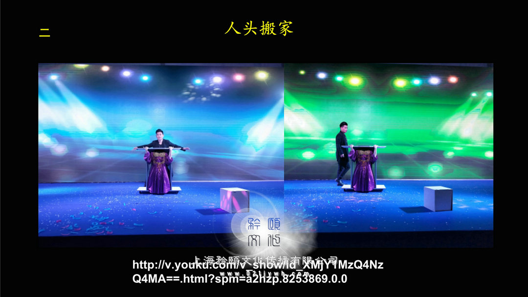 節目單:箱中傳奇、人頭搬家、神秘禮物盒、神秘禮物盒、古彩戲法、金玉滿堂、綁人換人、奇幻變裝秀、移形換位、大變活人