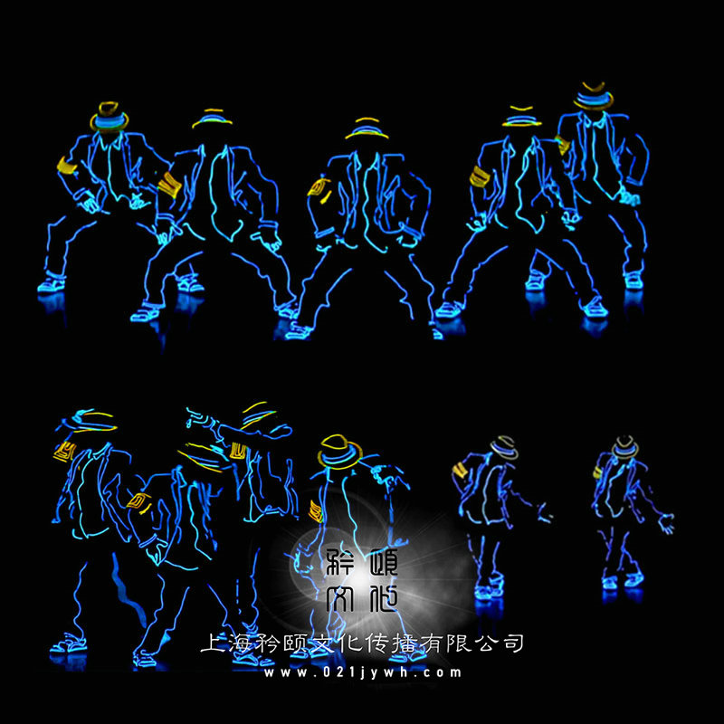 是繼熒光舞之后和閃光舞同類的一種舞蹈形式,基本上載體是一樣的,只不過電光舞更強調的是整體性,閃光舞強調的是炫目性,美國是銳舞文化的發源中心,在每一場派對上,你都能看到電光閃爍的絢麗現場,最開始通過化學的熒光棒進行表演,后來由于電致發光技術的發展,開始通過電來創造熒屏效果,在國外這種表演統一叫做glow in dark。