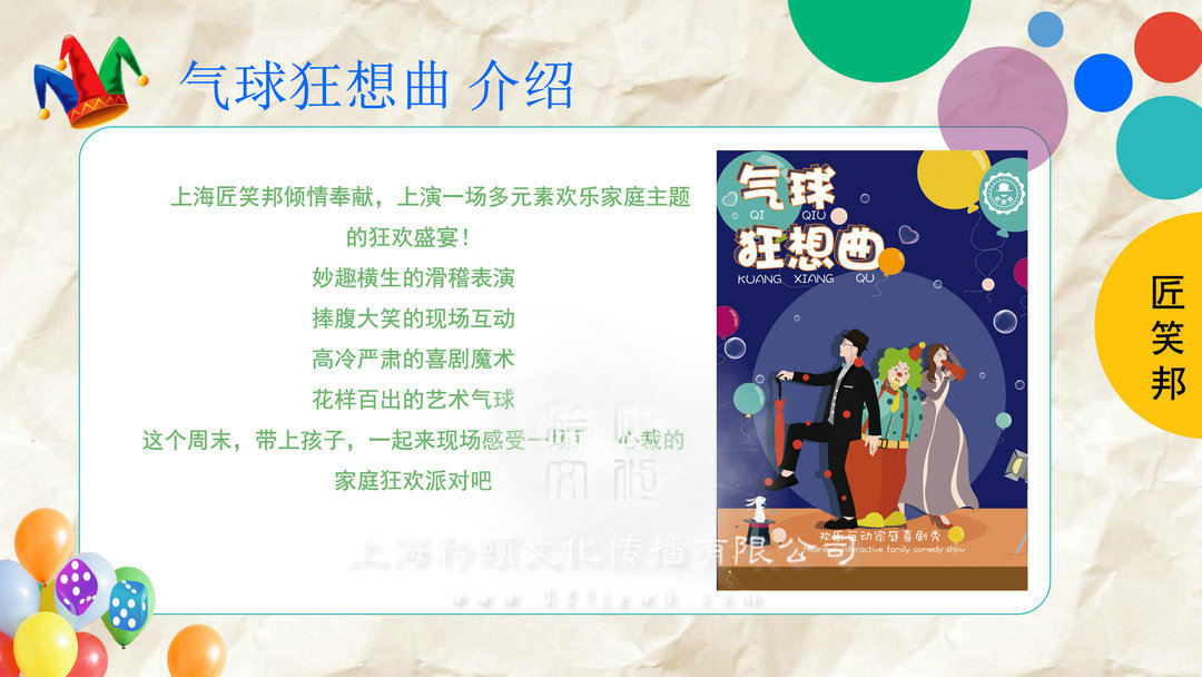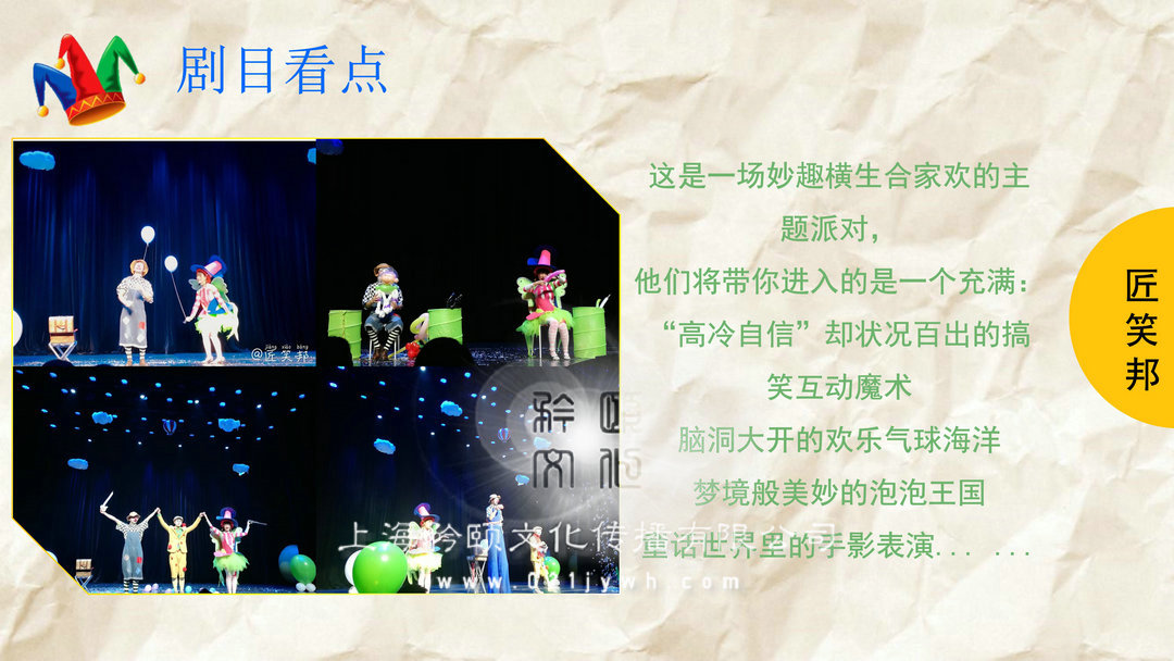 傾情奉獻,上演一場多元素歡樂家庭主題的狂歡盛宴!妙趣橫生的滑稽表演捧腹大笑的現場互動高冷嚴肅的喜劇魔術花樣百出的藝術氣球這個周末,帶上孩子,一起來現場感受一場別出心裁的家庭狂歡派對吧氣球狂想曲介紹這是一場妙趣橫生合家歡的主題派對,他們將帶你進入的是一個充滿:“高冷自信”卻狀況百出的搞笑互動魔術腦洞大開的歡樂氣球海洋夢境般美妙的泡泡王國童話世界里的手影表演... ...《氣球狂想曲》將在70分鐘里讓你大開眼界……原創式再現法式幽默的多元化表演藝術氣球+喜劇魔術+默劇+搞笑互動原創式再現法式幽默的多元化表演藝術氣球秀+喜劇魔術+默劇+斯蒂芬氣球+家庭互動它讓每個小朋友的臉上都掛滿笑容讓每一個成年人都興奮的跳起來而我們的工作就是不斷打磨升級讓它成為:一部適合所有年齡段觀看的互動歡樂秀。在國外,給孩子們看的兒童劇多不勝數。因為他們相信讓孩子們通過觀看戲劇,甚至在戲劇中扮演角色,能更快、更自然地進行各種學習。無論對性格的培養還是知識的獲取都大有益處。上海互動親子戲劇演出給你整理了一些由國外團隊創作或者改編的童話劇,有興趣的帶孩子去體驗一下吧!