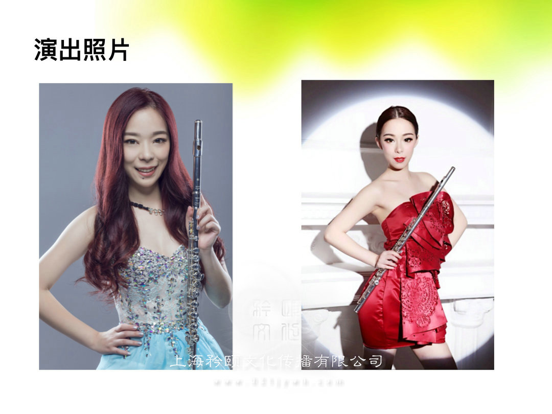 本人7歲開始學習長笛,10歲開始學習鋼琴,14歲獲得長笛十級證書,畢業于上海音樂學院,具備專業演奏水平和豐富的演奏經驗,形象氣質佳。少丿L時參加上海市管弦樂藝術團,在上海大劇院、上海音樂廳等地演出。業余時間在著名五星級酒店表演。工作期間是愛樂室內樂團的固定成員且多次參與音樂會的演出。