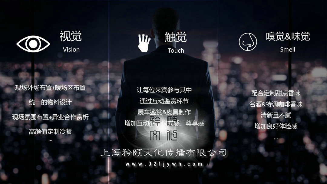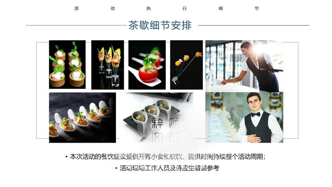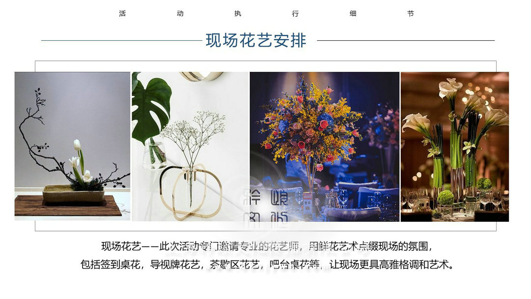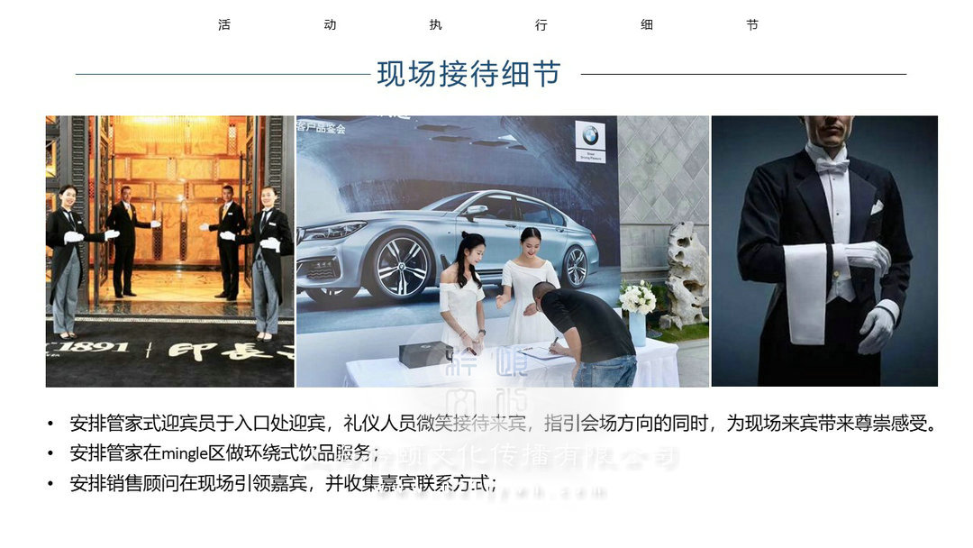 暖場區(qū)會安排侍應(yīng)生現(xiàn)場隨時為各位來賓提供專屬服務(wù);通過優(yōu)秀的異業(yè)合作 獲取高質(zhì)量 的目標(biāo)客戶。以奢侈品展示品鑒為暖場活動亮點,可融入國外服裝靜態(tài)秀體驗、名表鑒賞、香水體驗、奢侈品鑒賞等環(huán)節(jié),突出高端及高雅的生活方式理念, 活動性強(qiáng);