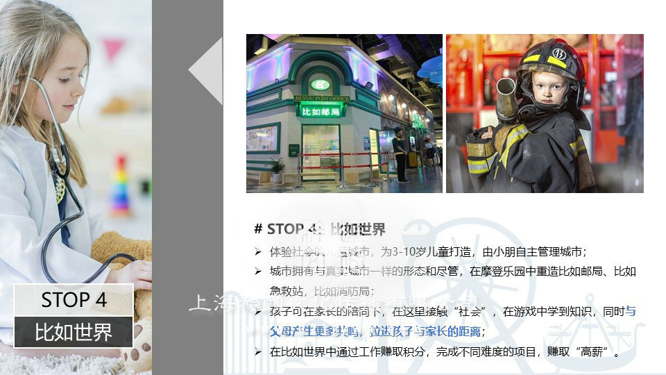 體驗社會的兒童城市,為3-10歲兒童打造,由小朋自主管理城市;城市擁有與真實城市一樣的形態和盡管,在摩登樂園中重造比如郵局、比如急救站,比如消防局;孩子可在家長的陪同下,在這里接觸“社會”,在游戲中學到知識,同時與父母產生更多共鳴,拉進孩子與家長的距離;在比如世界中通過工作賺取積分,完成不同難度的項目,賺取“高薪”。