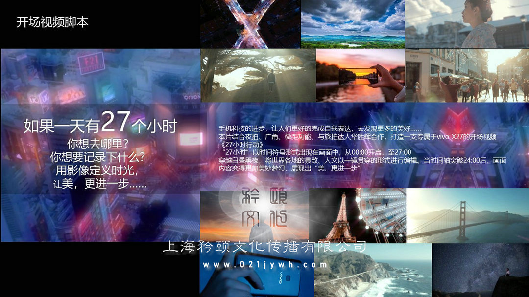 上海公關(guān)作為活動(dòng)的首支10秒預(yù)熱視頻,本片將以時(shí)間為線索,結(jié)合品牌元素及產(chǎn)品信息記錄下27小時(shí)中的視覺片段。隨著時(shí)間臨近第27小時(shí),揭示出活動(dòng)的時(shí)間、地點(diǎn)。