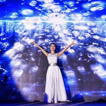 光耀未來是一個大型的視頻互動全息舞蹈,最早出現在中國動漫節上,采用全息投影將視頻投射到舞臺中的半透膜上,然后舞蹈演員有節奏地舞蹈,配合著視頻的播放,形成一個人和影像的互動,兩者結合在一起再搭配適當的背景音樂,能夠創造出極具視聽震撼的舞臺效果。這種舞蹈也稱之為光影舞,光影舞表演,主要是將光影效果拓展延伸到獨立的主體表演中的藝術形式,在這兩年里,以其獨特的視覺震撼,迅速成為一項新興、獨特的藝術表演門類。同時逐漸被一些大型攝影展或是商演青睞。