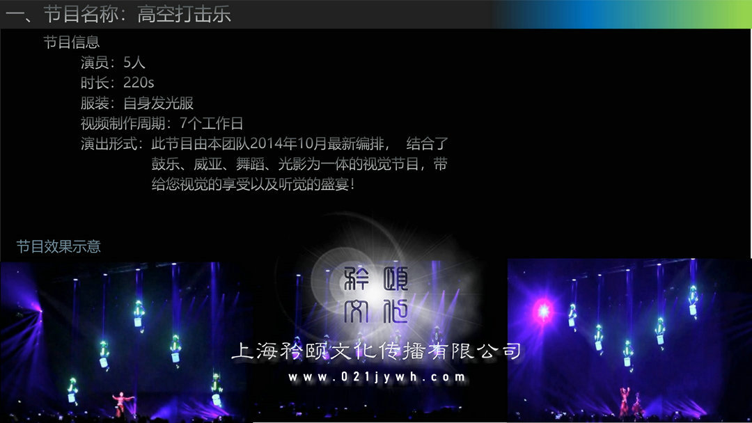 鼓樂、威亞、舞蹈、光影為一體的視覺節目,帶