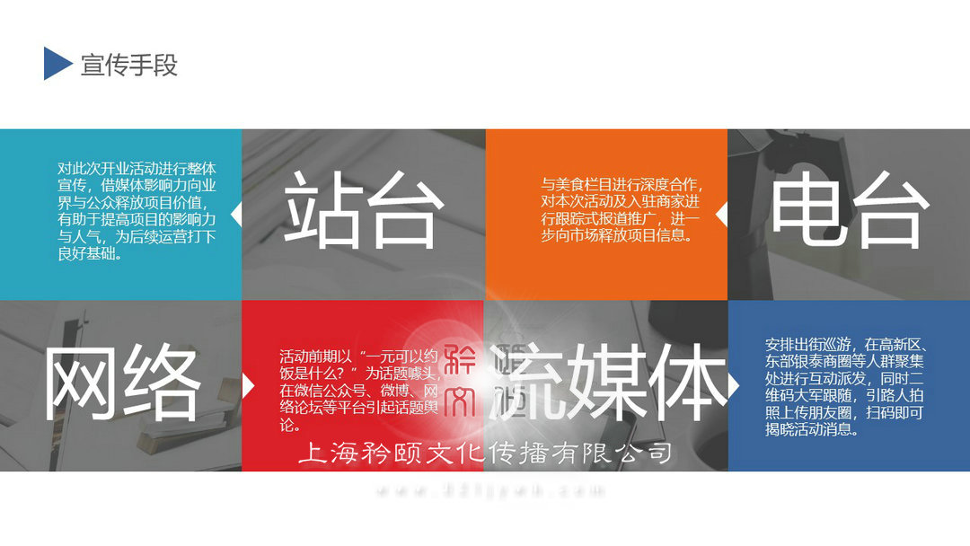 2.活動策劃,策劃慶典活動,開業奠基,商業巡演,路演,品牌推廣活動,年會、周年慶典、客戶答謝會、商業開盤、節慶活動,促銷活動等