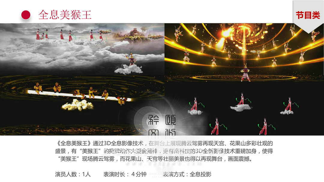 演員人數:6人表演時長:4分鐘表演方式:全息投影