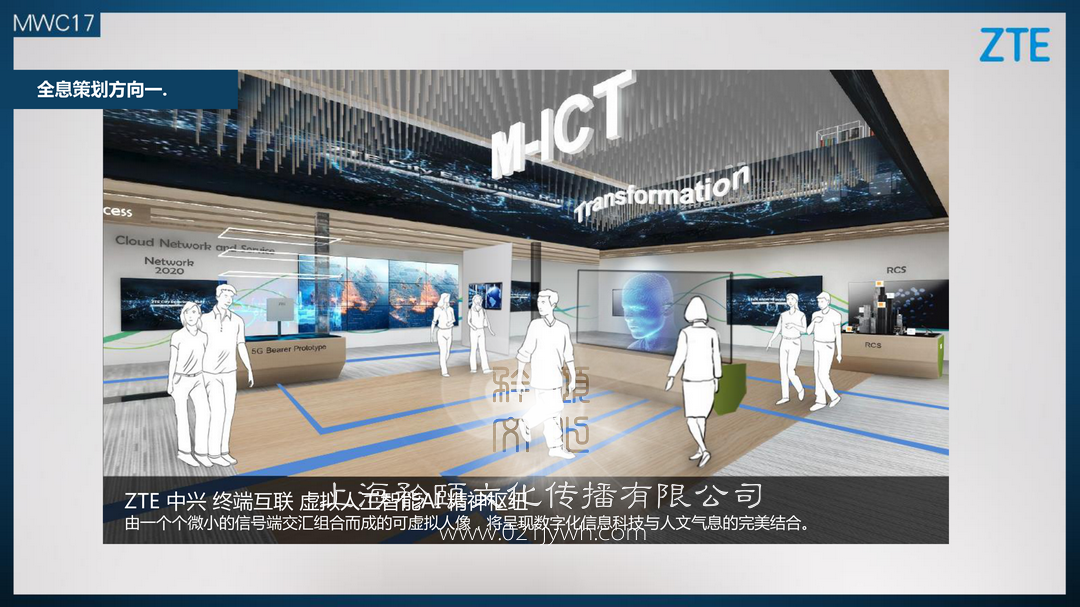 ZTE 企業 終端互聯 虛擬人工智能AI 精神樞紐由一個個微小的信號端交匯組合而成的可虛擬人像,將呈現數字化信息科技不人文氣息的完美結合。