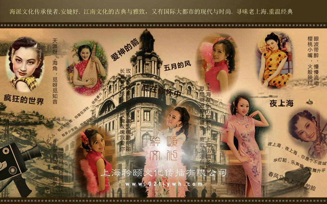 只有30年代的老上海,才能夠象征品位、格調、優雅、浪漫、摩登、經典。對老上海的風情,有人說30年代的上海充盈著燈紅酒綠,彌漫著靡靡之音,在昏暗曖昧的敏色軟風中買醉銷魂……那濃濃的老上海風情撲面而來。原汁原味老上海唱腔的安婕妤老師,她那典雅醇厚的歌聲,飄散著特有的動人的女人味、音質甜美,而且吐字清晰,經過麥克風傳將出來更是委婉動人。上海老歌,似流淌過歲月的河流,以其深厚的人文底蘊及豐富的美學內涵,成為了一張老上海名片。那些美妙的歌聲,仿佛繚繞著美酒加咖啡的奇香,氤氳著云裳霓虹的異彩,袒露著追求愛情的執著。嗅過夜來香彌漫的老上海,走過霓虹閃爍的長街,歲月就這樣悄悄溜走,只有熟悉的歌聲在耳邊回蕩……
