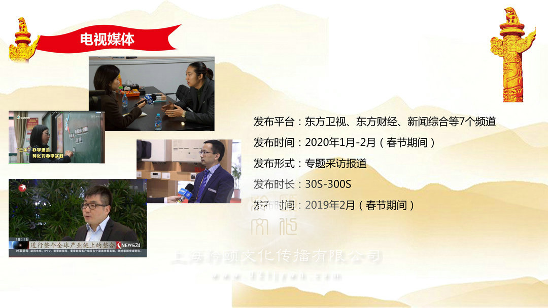 電視媒體:               發布平臺:東方衛視、東方財經、新聞綜合等7個頻道