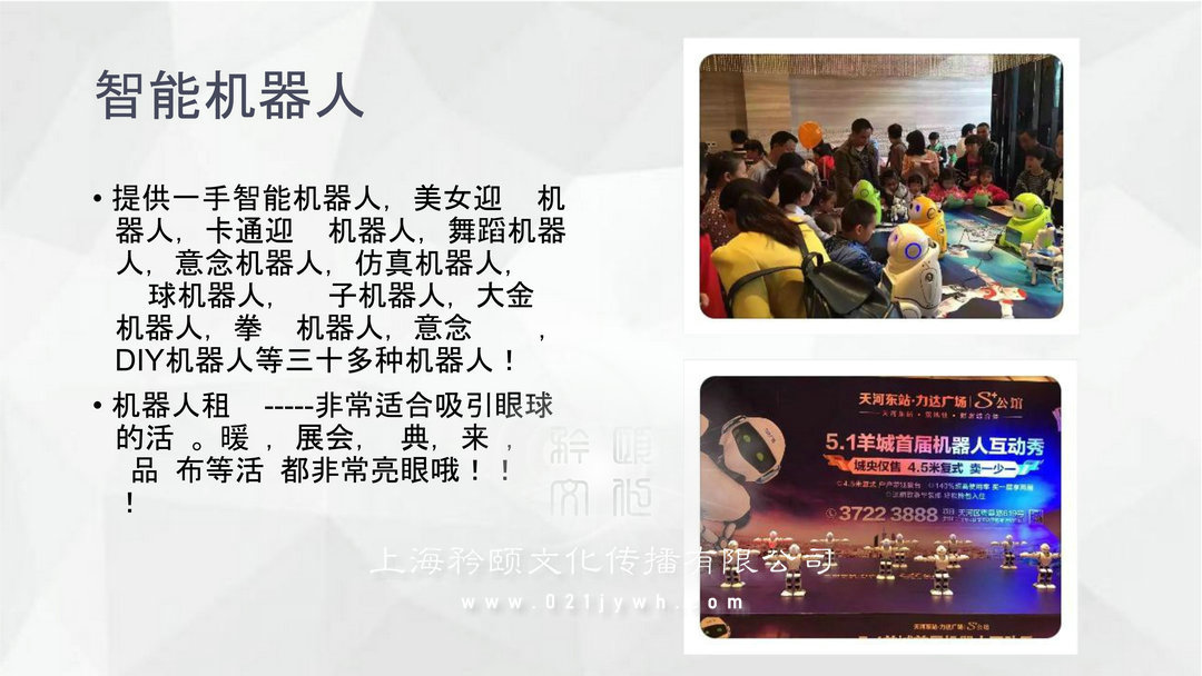 智能機器人•提供一手智能機器人,美女迎 機器人,卡通迎 機器人,舞蹈機器人,意念機器人,仿真機器人, 球機器人, 子機器人,大金 機器人,拳 機器人,意念 ,DIY機器人等三十多種機器人!•機器人租 -----非常適合吸引眼球的活 。暖 ,展會, 典,來 , 品 布等活 都非常亮眼哦!!