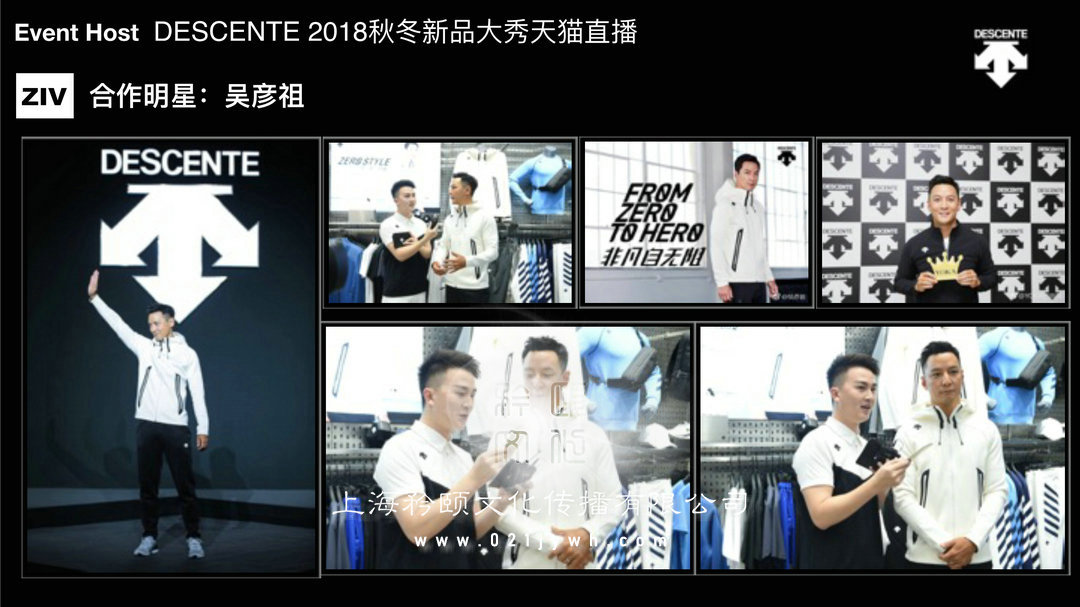 •DESCENTE 2018秋冬新品?秀天貓直播明星:吳彥祖•CHARLES & KEITH限時體驗店開幕儀式明星:古?娜扎