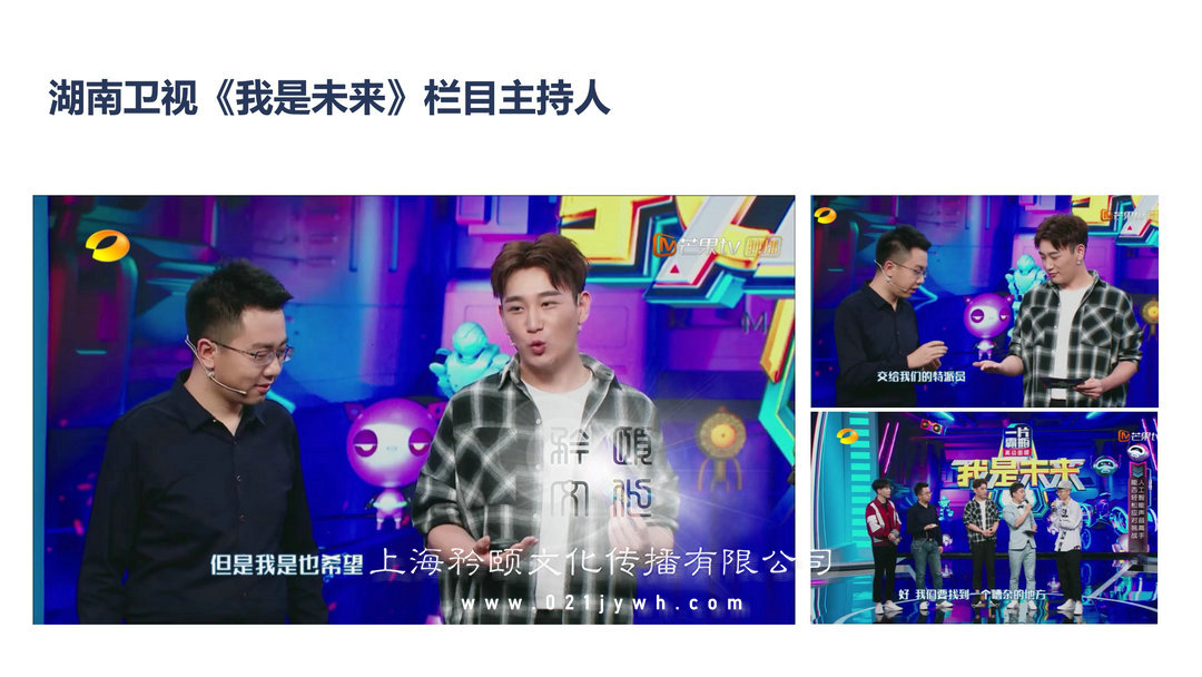電視臺欄目/TVStationColumn、湖南衛視《我是未來》欄目主持人、上海衛士《紅播財經》欄目主持人、廣東衛視《見多識廣》欄目主持人