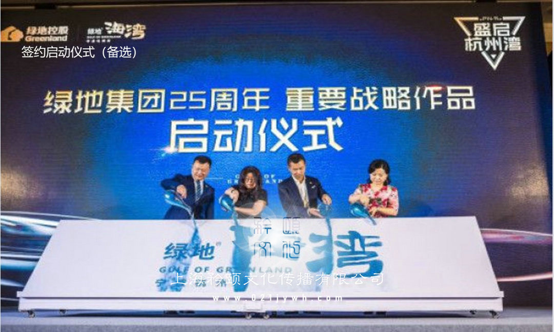 主持人邀請領導、嘉賓代表及商家代表共同上臺,隨著倒計時共同觸摸大屏,為上海xx項目品牌主題進行發布點亮。