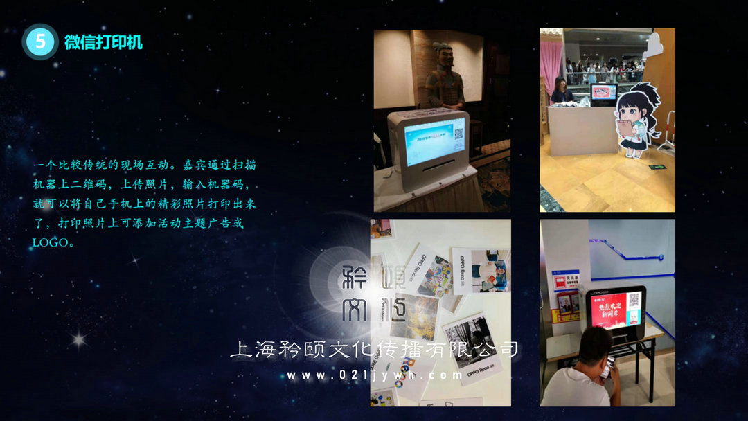 一個比較傳統(tǒng)的現(xiàn)場互動。嘉賓通過掃描機器上二維碼,上傳照片,輸入機器碼,一以葑自己于機上的精彩照片打印出來了,打印照片上可添加活動主題廣告或.LOGOO
