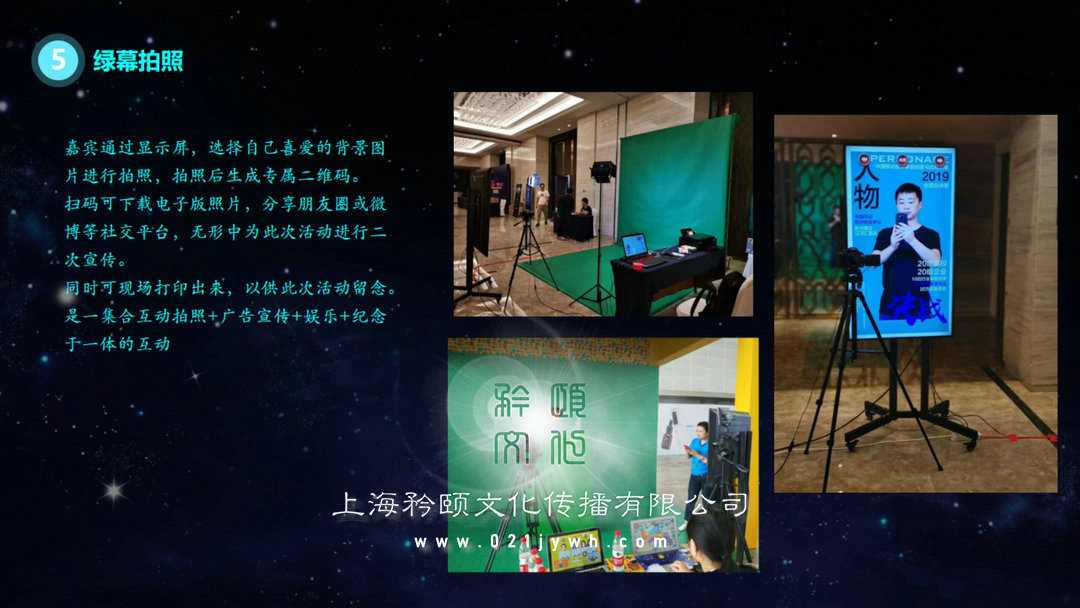 嘉賓通過顯示屏,選擇自己喜愛的背景圖片進行拍照,拍照后生成專屬二維碼。掃碼可下載電子版照片,分享朋友圈或微博等社交平臺,無形中為此次活動進行二次宣傳。同時可現(xiàn)場打印出來,以供此次活動留念。是一集合互動拍照+廣告宣傳+娛樂+紀念于一體的互動