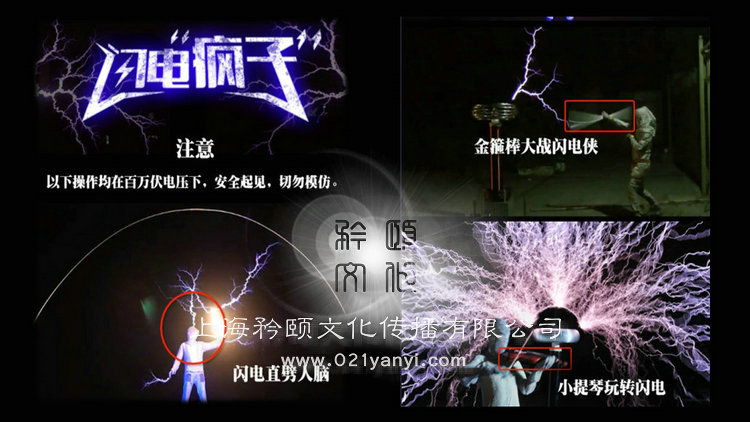 13年11月24日,湖南衛(wèi)視《奇舞飛揚(yáng)》,為閃電加入了新的元素。節(jié)目表演中,電光火花交織成電網(wǎng)閃爆整個(gè)演播廳,評(píng)委老師們從頭到尾全神矚目,尖叫不斷