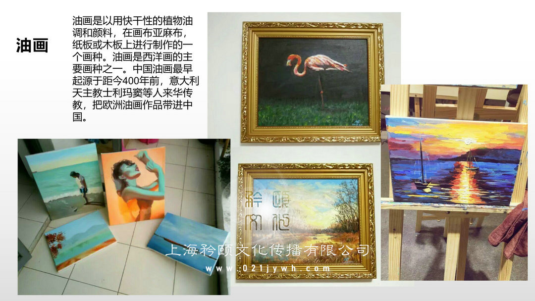 水墨畫:由水和墨經(jīng)、過調(diào)配水和墨的濃度、所畫出的畫是繪畫的一種形式,更多時(shí)候,水墨畫被視為中國傳統(tǒng)繪畫,也就是國畫的代表。也稱國畫,中國畫。油畫是以用快干性的植物油調(diào)和顏料,在畫布亞麻布,油畫紙板或木板上進(jìn)行制作的一個(gè)畫種。油畫是西洋畫的主要畫種之一。中國油畫最早起源于距今400年前,意大利天主教士利瑪竇等人來華傳教,把歐洲油畫作品帶進(jìn)中國。墻繪(黑板畫)
