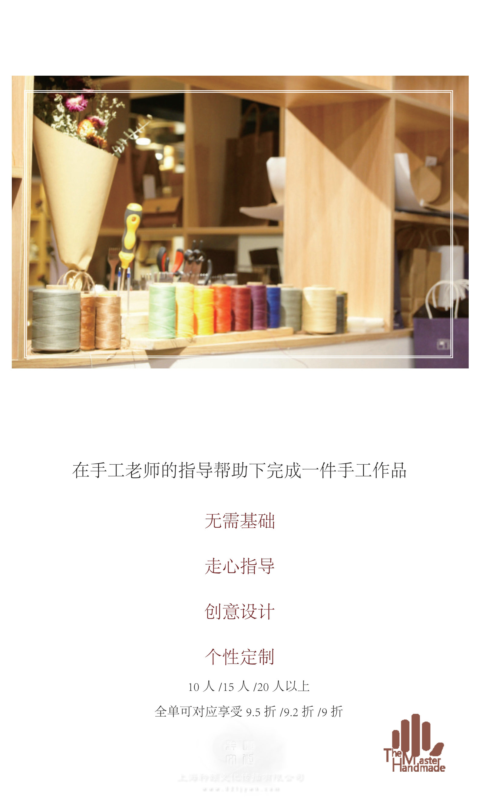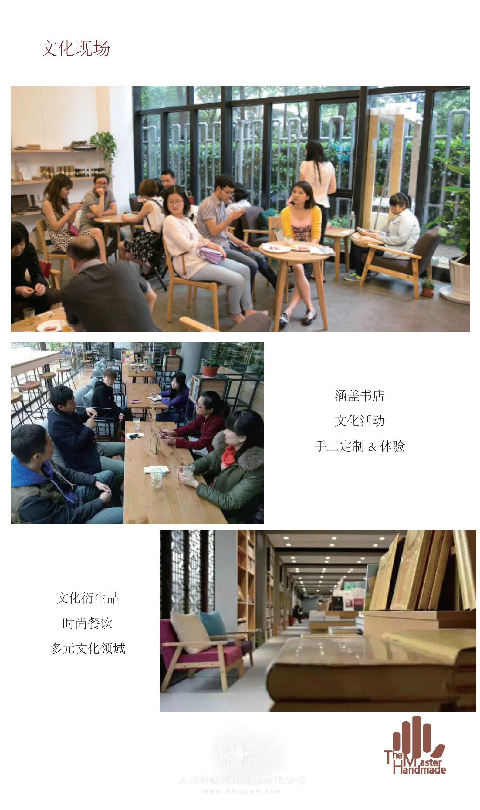 堅持原創、手工、文化、良品、定制的品牌核心理念。我們始終專注于將文化、手工、體驗三者融合,將體驗的理解復制到各行各業,最終形成體驗業態全新生態圈。歷經10年,目前,在上海已輻射靜安寺、人民廣場、陸家嘴、五角場等多個時尚商業圈、旅游聚散地、文化藝術空間,涵蓋書店、文化現場、手工定制&體驗、文化衍生品、時尚餐飲等多元文化領域,在上海,已有十余家手工定制&體驗館、文創產品專賣店,提供原創手工作品、定制與體驗服務,惠及與培育成千上萬的THMer——手工大師。