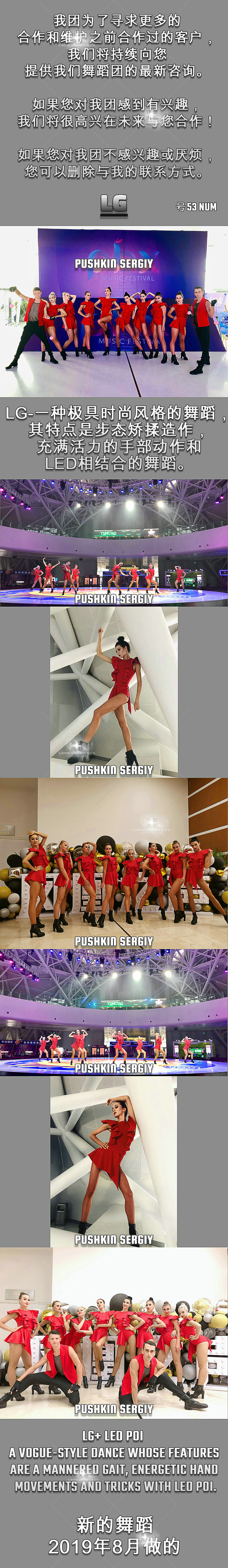 為您展現一種極具時尚風格的舞蹈,其特點是步態矯揉造作,充滿活力的手部動作和LED相結合的舞蹈,我們主要提供:(1)外籍舞蹈(外籍街舞 俄羅斯民間舞 爵士舞 ) (2)上海WF外籍藝術團承接 外籍樂隊 (外籍搖滾樂隊 ) (外籍爵士樂隊) 自己公司簽約的演員 統一式管理 工作簽證 我們團隊可以報批 備案各類文化演出(商場 游樂場 酒吧 音樂餐廳 劇院等)保障活動一切手續合法化。